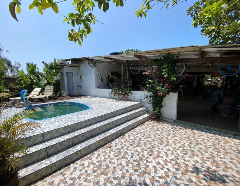 Chácara no bairro Santa Cruz, litoral sul de São Paulo, ficando lado praia aproximadamente 700 metros da praia. Imóvel com 4000 m² de área total, sendo 228 m² de área construída. Possui churrasqueira, piscina e garagem para 6 veículos.