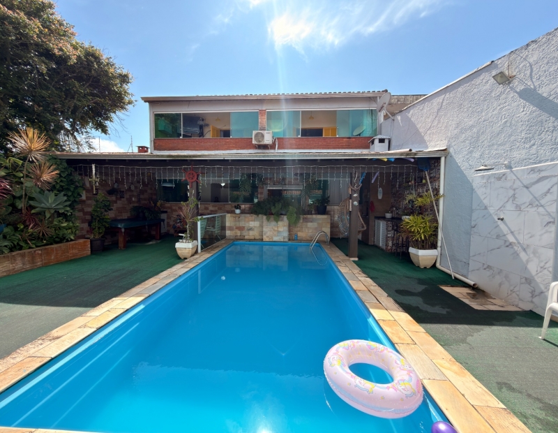 Casa com edícula assobradada à venda no bairro Nova Itanhaém, litoral sul de São Paulo. Situada lado praia, o imóvel esta apenas a 400 metros do mar. Imóvel com 335m² de área total, sendo 167m² de área construída. Possui quintal amplo, portão automático, área de churrasqueira, piscina com cascata, ar condicionado, armário de cozinha, armário no corredor, aquecimento solar, área de serviço, armário no banheiro & vaga de garagem para 03 automóveis.