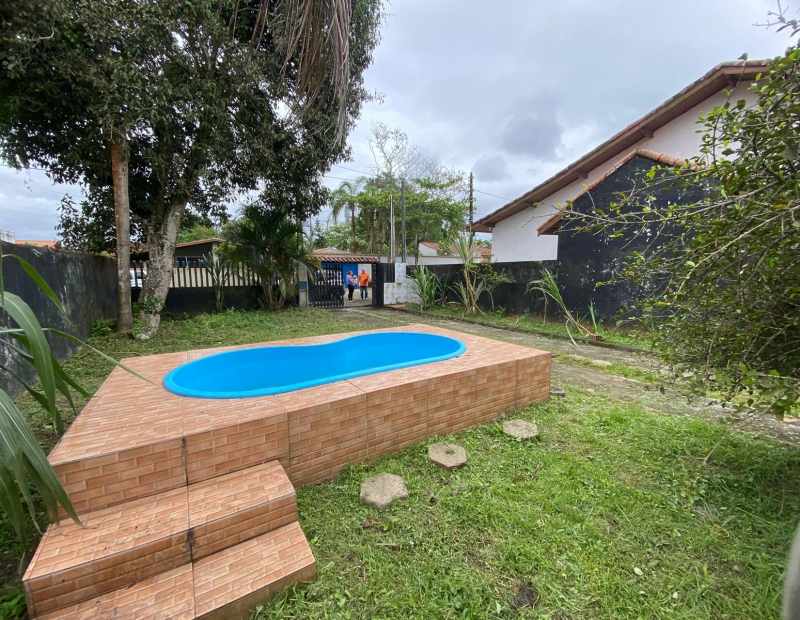 Casa no Jardim Califórnia, em Itanhaém, Litoral Sul de São Paulo, localizada à 700 metros do mar, em rua pavimentada. Possui quintal, churrasqueira, piscina e vaga para 05 automóveis.