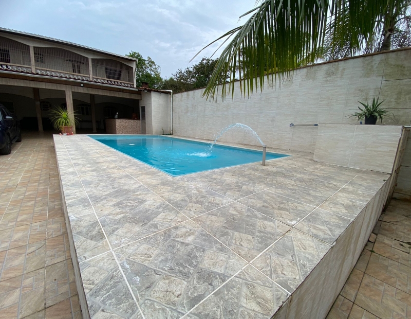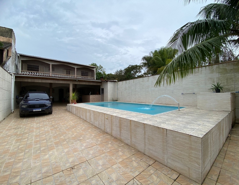 Sobrado no Jardim das Palmeiras, em Itanhaém, litoral Sul de São Paulo, localizado lado praia à 750 metros da praia, em rua pavimentada. Imóvel com 255 m² de área total, sendo 150 m² de área construída. Possui área gourmet com churrasqueira, piscina e vaga para 05 automóveis.